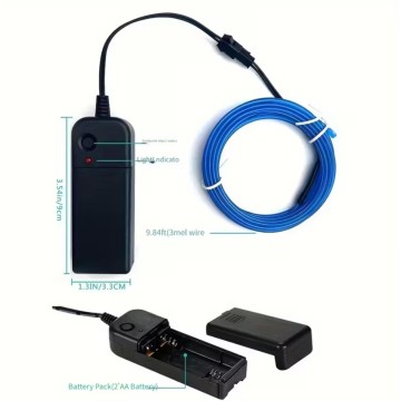 Przewód zasilany jest 2 bateriami AA (brak w zestawie). Technologia EL zapewnia niskie zużycie energii, brak nagrzewania oraz bezpieczne użytkowanie.