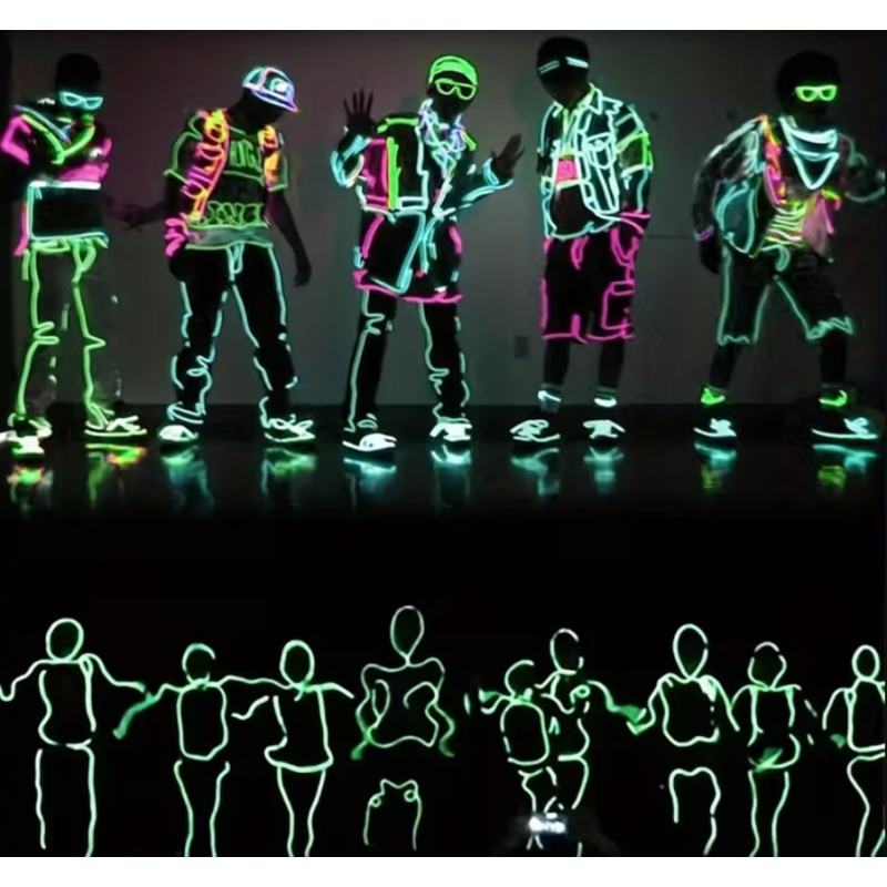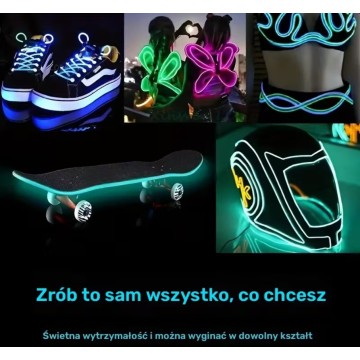 Elastyczny, świecący przewód o długości 5 m i średnicy 2,3 mm, który doskonale sprawdzi się podczas imprez, festiwali, cosplayu, Halloween, Bożego Narodzenia czy jako nietypowa dekoracja wnętrz i samochodu.