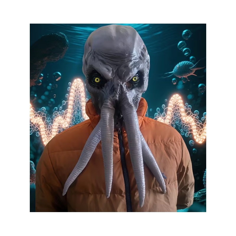 Realistyczna Maska Ośmiornicy z Elastyczną Głową Lateksu i Ruchomymi Przeponami - Kostium Mitologii Cthulhu do Roleplaya Lovecrafta, Strój na Imprezę Horrorów Morza