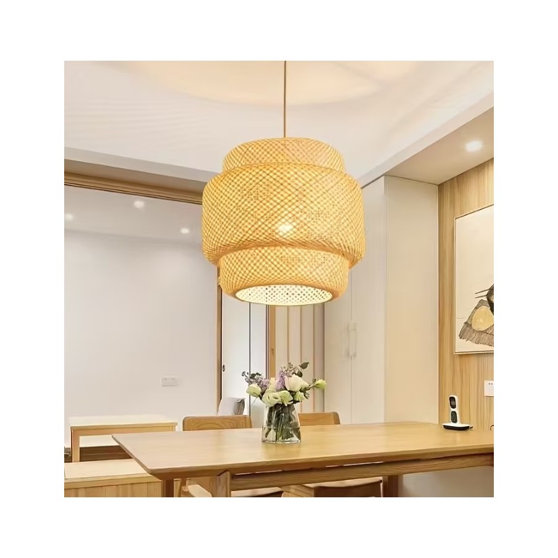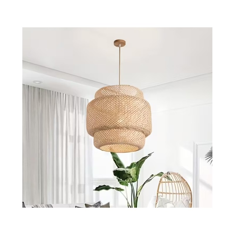 Lampa wisząca Ręcznie Tkany Bambusowy 3-poziomowy Abażur 1x E27